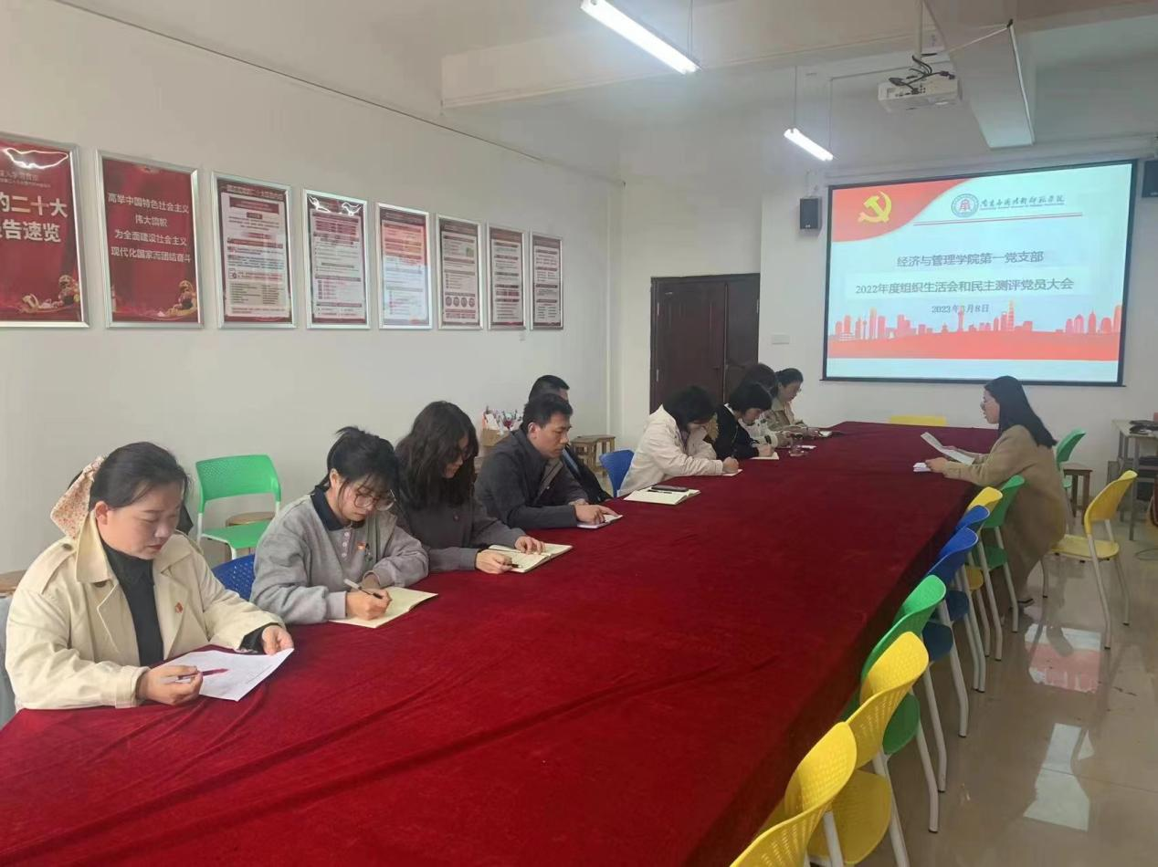 为深入学习贯彻党的二十大精神,坚持不懈用习近平新时代中国特色社会主义思想凝心铸魂,beat365中文官方网站第一党支部结合实际,于2023年3月8日在教学楼1207会议室认真召开2022年度组织生活会和民主测评党员大会。本次大会由第一党支部书记刘慧玲主持会议并讲话,参会人员共10人,请假1人。