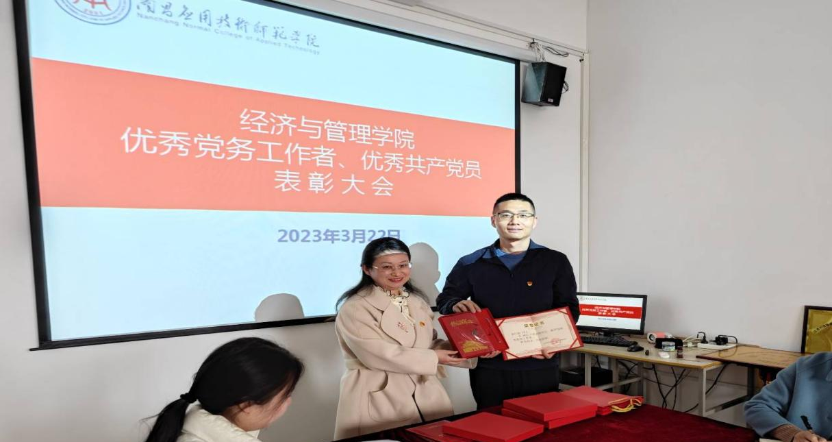会议开始,殷揭如宣读了荣获beat365中文官方网站2022年度“优秀党务工作者”和“优秀共产党员”的人员名单。党总支书记王颖同志为获奖人员颁奖。奋楫笃行,臻于至善,本次表彰体现了党总支对于实干肯干,德才兼备者的重视。