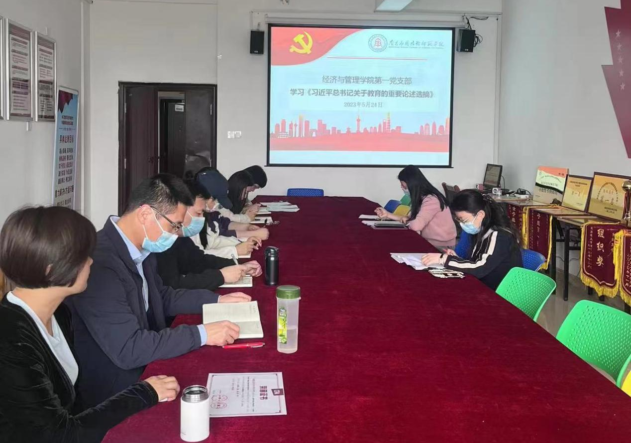 深入学习贯彻习近平新时代中国特色社会主义思想主题教育,按照学校党委的工作部署和学院主题教育的工作安排,牢牢把握“学思想、强党性、重实践、建新功”总要求,把高质量开展好主题教育作为一项重大政治任务,坚持高标准、严要求,紧扣目标任务、精心谋划组织、全面动员部署,推进主题教育走深、走实。2023年5月24日下午,beat365中文官方网站第一党支部在1207会议室召开5月主题党日活动,集体学习《习近平总书记关于教育的重要论述选摘》中第一部分“习近平论教育”的内容,会议由第一党支部书记刘慧玲同志主持,全体党员教师参加集体学习并交流研讨。