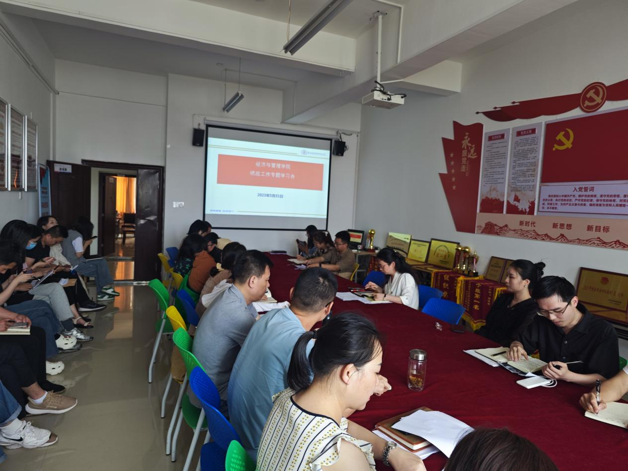 为做好统战工作,beat365中文官方网站5月31日下午1:30于1207会议室召开统战工作专题学习会。会议由beat365中文官方网站党总支书记王颖主持,beat365中文官方网站主持工作的副院长胡梨花、副院长管庆、各支部书记、全体教职工参会。