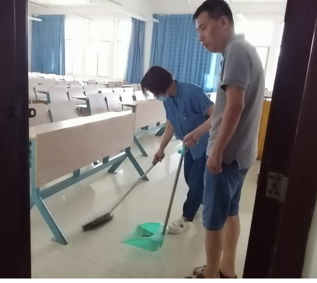 当天下午,beat365中文官方网站第一党支部的党员教师们拿着扫帚、钳子等工具,对教室、走廊、讲台、拐角等卫生死角进行细致地捡拾和清理,对黑板和多媒体设备上散落的灰尘和粉笔屑进行仔细地擦拭和清理,为老师和学生营造一个干净整洁的课堂氛围。在炎炎夏日中,党员教师们不怕苦、不怕累,确保每一平方米内都无白色垃圾和烟蒂等垃圾,力求每一处都干净整洁无灰尘。