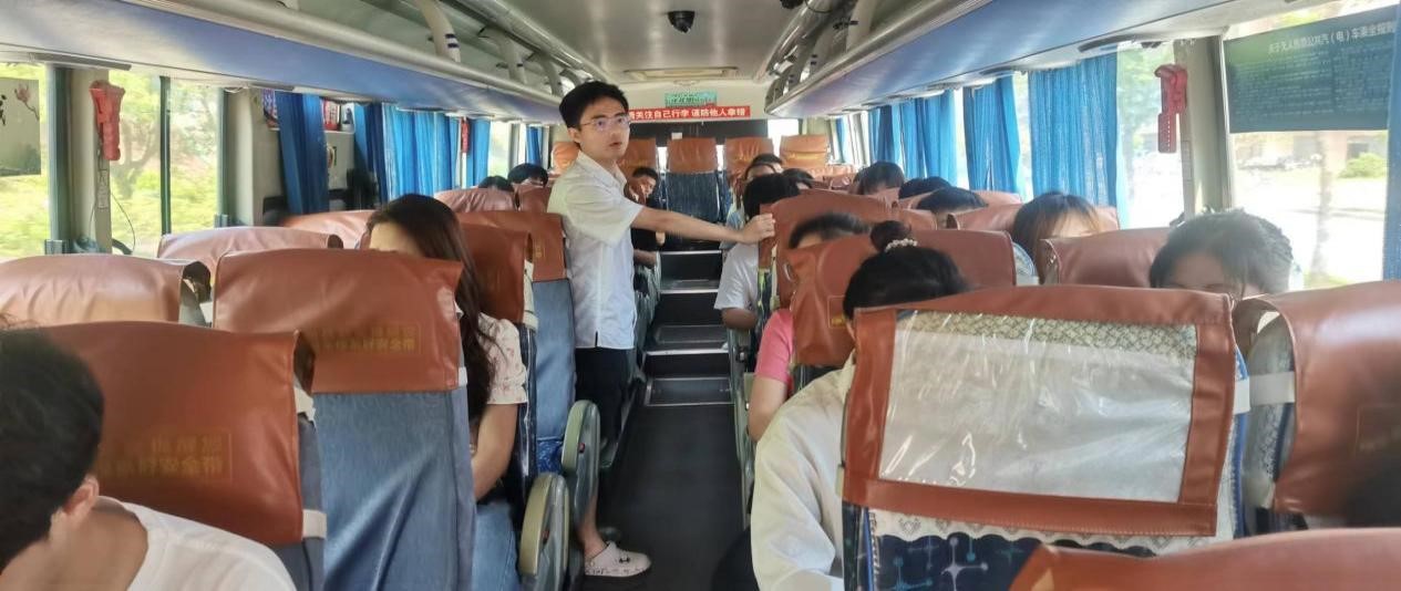 (毕业生们乘车到达江西科技职业学院)