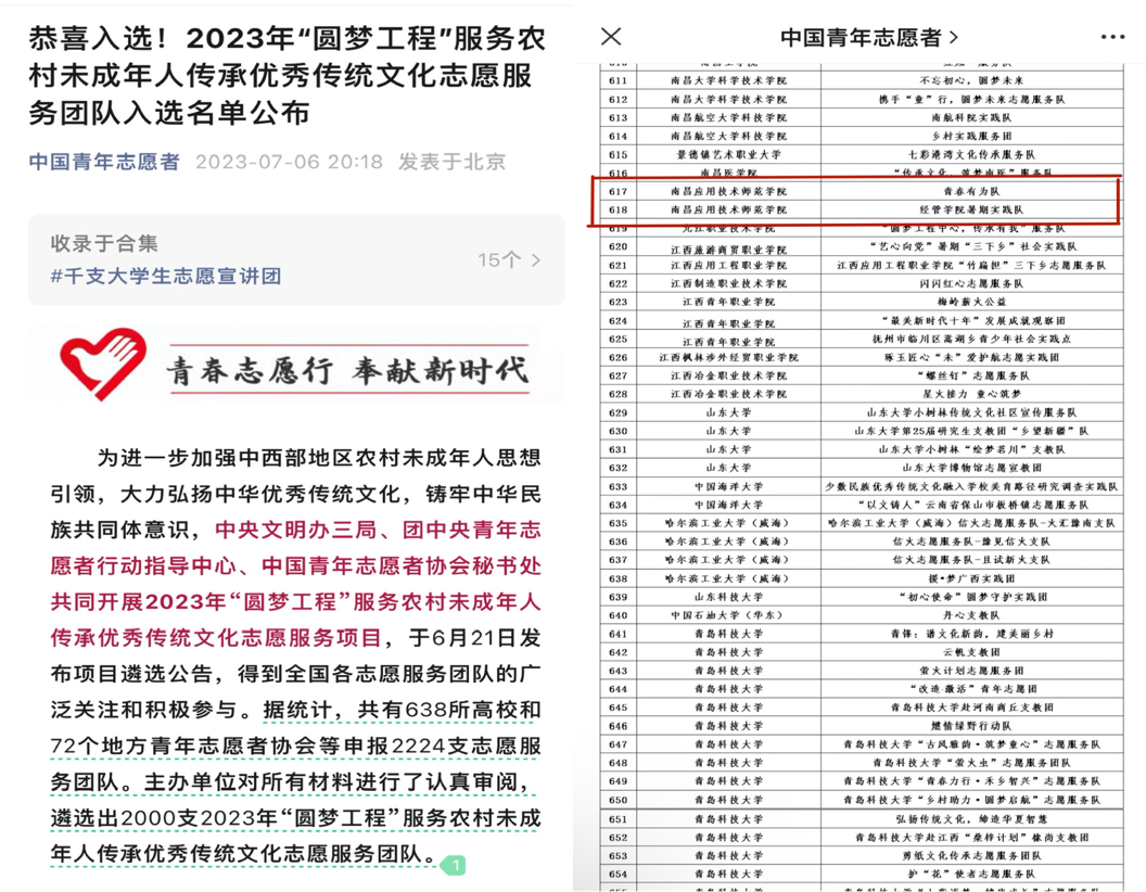 喜报|beat365中文官方网站暑期“三下乡”实践队入选2023年“圆梦工程”服务农村未成年人传承优秀传统文化志愿服务团队