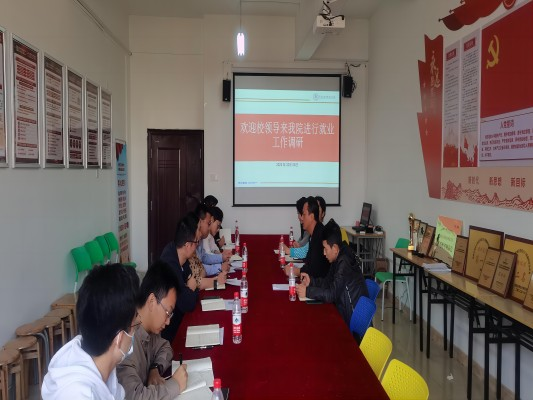 10月25日上午,校长助理娄全福、招就处处长刘杰一行到beat365调研就业工作,学院副院长胡梨花(主持工作)、党总支书记龙犇、副院长袁江波、副书记朱红梅及学院负责就业工作的相关同志一同参加调研。