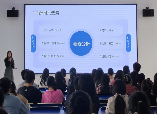 在互动环节,忽帅琪以生活中的趣事举例,为本次课程带来丰富、详细、实用的内容。听课的同学们专心致志,积极发言。大家纷纷表示对新闻稿的写作方法以及拍照的技巧有了新的认识,为今后撰写新闻稿打下坚实基础。