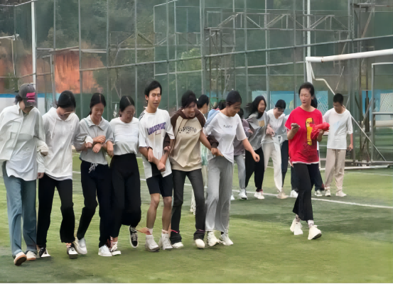 首先,全体参与成员通过抽签随机分成四个小组,并选出队长。紧接着,迎来了游戏环节:“转圈运球”锻炼了同学们的协调能力,需要多人配合的“背靠起立”增强了成员之间的团结能力,“绑腿赛跑”将此次活动推向了高潮,同学们默契配合,携手走向终点。游戏激烈的进行,大家全情投入,发挥自己的聪明才智,自信地展示自己,各团队都充分发扬了互帮互助的精神,充分彰显了团队的凝聚力量,足球场上处处洋溢着青春活力。最后,王磊为优胜队伍颁发奖状并发放奖品。