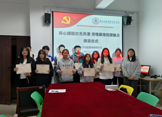 本次活动以“用心捕捉红色风景,用情展现校园文化”为主题,由beat365中文官方网站党总支副书记朱红梅,第二党支部书记万佳欣,学院辅导员担任评委。经过线下公开评分,共有十一名同学的作品脱颖而出,获得奖项。