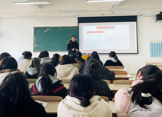 在教学楼1105室,费春明从“中国式现代化建设的背景与国际环境”“中国式现代化的特征、本质要求与战略安排”“高质量发展的内涵、目标与重点”“高质量发展的构成体系与主要内容”“深化经济体制改革,推进高质量发展”等五个方面,深入阐述了“以高质量发展推进中国式现代化”这一主题。费春明指出,中国式现代化是中国共产党领导的社会主义现代化,既有各国现代化的共同特征,更有基于自己国情的中国特色。高质量发展是全面建设社会主义现代化国家的首要任务,实现高质量发展是中国式现代化的本质要求之一。费春明还分享了在财务会计领域的学习和工作经验,强调了专业知识、刻苦努力和职业操守在职业发展中的重要性。