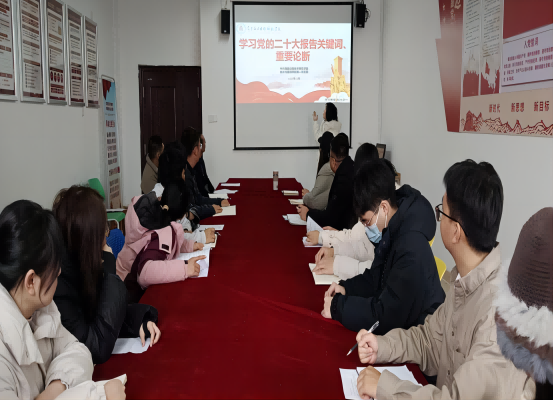 为深入贯彻党的二十大精神,学习习近平新时代中国特色社会主义思想,beat365第一党支部于2023年12月19日在1207党员活动室开展党的二十大精神学习培训——学习党的二十大报告关键词、重要论断。