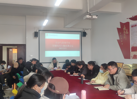 2024年2月27日,beat365中文官方网站在会议室召开师德师风专题部署会议,深入学习贯彻习近平总书记关于教育的重要论述和教师队伍建设的重要指示精神,深入推进师德师风专题教育,提升beat365中文官方网站教师师德师风建设工作水平。学院党支部书记龙犇主持会议,综合办主任张威龙带领全体教职工共同学习师德师风专题会议精神。