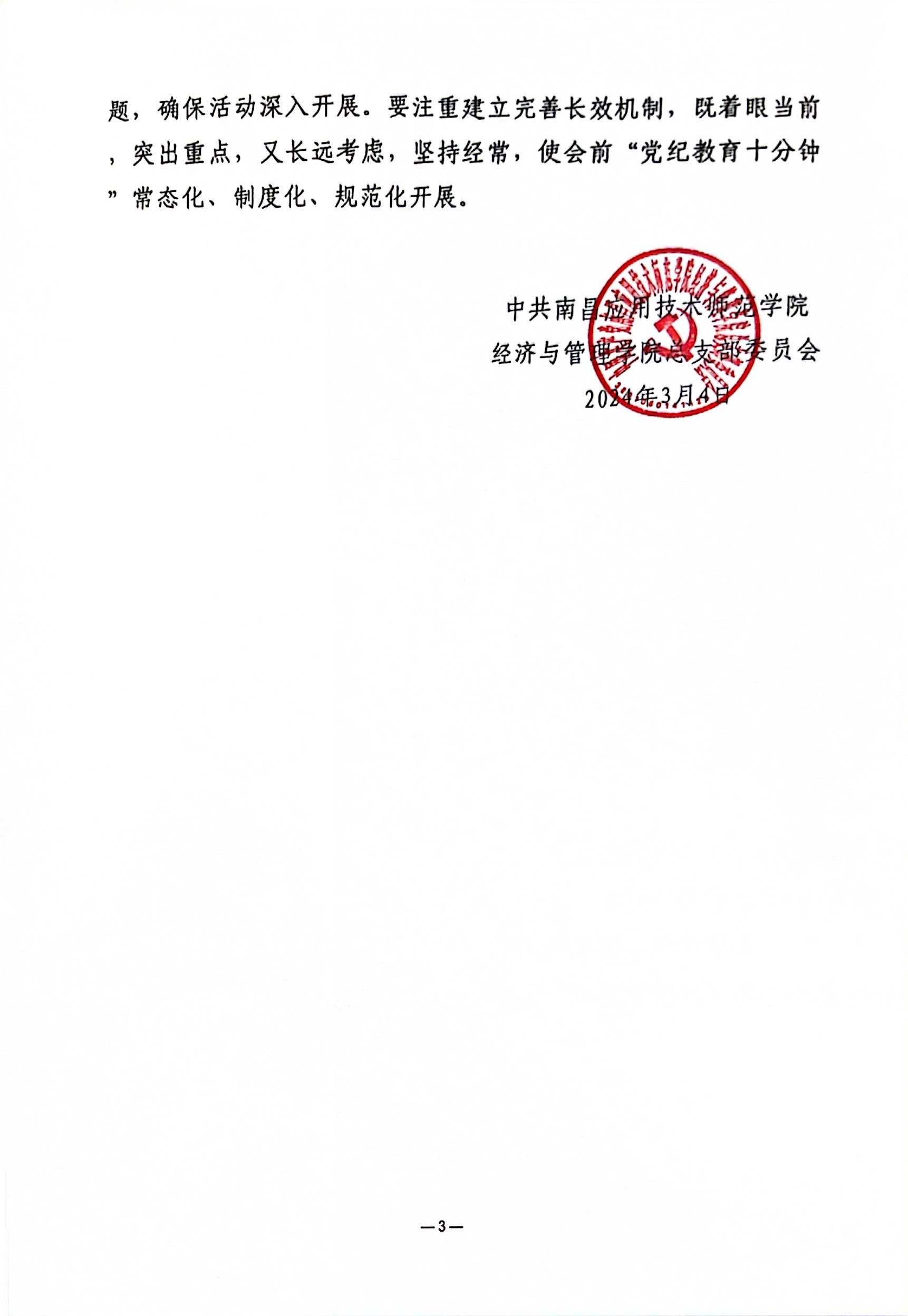 base 首页栏目 学院概况 学科专业 教学管理 教学科研 学团风采 党建活动 招生就业 党纪学习教育专栏 专题专栏 您现在的位置是:首页 > base > 党纪学习教育专栏 beat365中文官方网站党总支关于开展《会前“党纪教育十分钟”实施方案》的通知 管理员2024-03-04226 上一篇 党纪学习教育·每日一课丨直接责任、主要领导责任、重要领导责任如何区分? 下一篇 党纪学习教育·每日一课丨违背公序良俗行为的处分规定