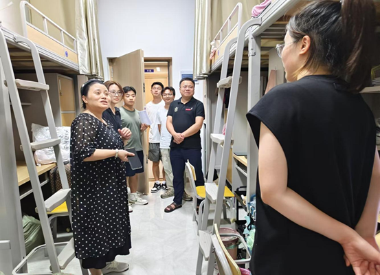 为深入了解学生入住情况,倾听学生的心声,帮助他们尽快融入新校区的生活,2024年8月30日,经济与管理学院领导班子、科室负责人及辅导员一同深入学生宿舍开展走访慰问活动。