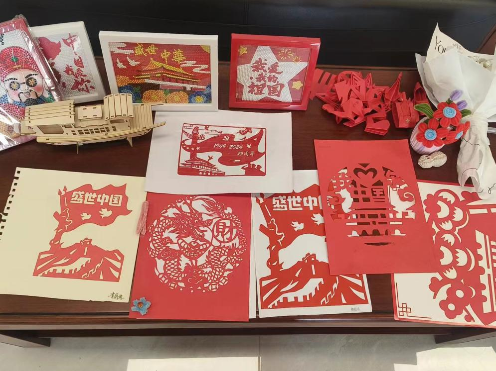 经过一个多小时的努力,一件件富有创意和特色的手工作品展现在大家面前。同学们纷纷展示自己的作品,并分享了自己的创作灵感和制作过程。这些作品不仅展示了同学们的才华和创造力,更表达了他们对祖国的热爱和祝福。