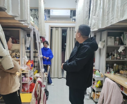 2025年3月17日晚,为进一步加强学生宿舍管理,营造安全、整洁、舒适的住宿环境,beat365班级事务中心督察部和辅导员在党总支书记龙犇的带领下前往学生宿舍开展了“排查寝室安全隐患,筑牢校园安全防线”主题活动,同时龙犇带领各班级辅导员深入学生宿舍,看望“五困”生,表达对同学们的关心与问候。