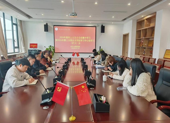 在交流发言环节,学院院长胡梨花结合学院教学实际,提出要将习近平新时代中国特色社会主义思想融入课程体系建设,加强实践教学,培养学生的创新思维和实践能力,以适应新时代对经济管理人才的要求。党总支副书记朱红梅则从党建工作角度出发,表示要进一步加强党组织建设,发挥党员先锋模范作用,通过党建引领促进学院各项事业发展。综合办主任张威龙和院团总支书记李卉洁也结合自身工作分享了学习感悟,提出要将理论学习成果转化为实际工作举措,提高工作效率和服务质量。