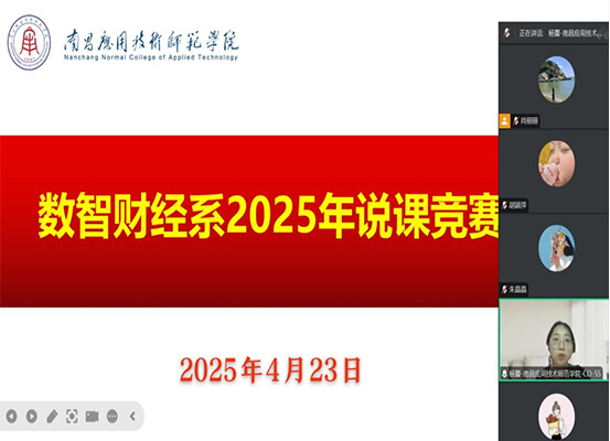 为进一步提升教师教学能力,激发教学创新思维,营造积极进取的教学研讨氛围。数智财经系于2025年4月23日晚上19:00在腾讯会议上举办了一场别开生面的说课竞赛。本次比赛全体教师齐聚,通过线上展示与互动交流,共同推进数智财经系教学发展。