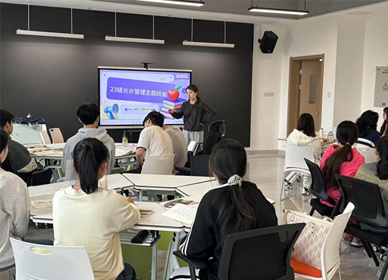 见面会上,班主任们以“专业启蒙者”身份,结合学科特点与行业趋势,系统解读各专业人才培养方案。班主任袁院长通过“课程体系地图”,直观展示知识模块的递进关系,强调“基础课程筑牢根基、实践环节锻造能力、创新项目拓宽视野”的成长逻辑;旅游专业班主任周老师则以“语言+跨文化能力”双核模型为框架,解析复合型人才培养路径,鼓励同学们在知识学习中融入国际视野。