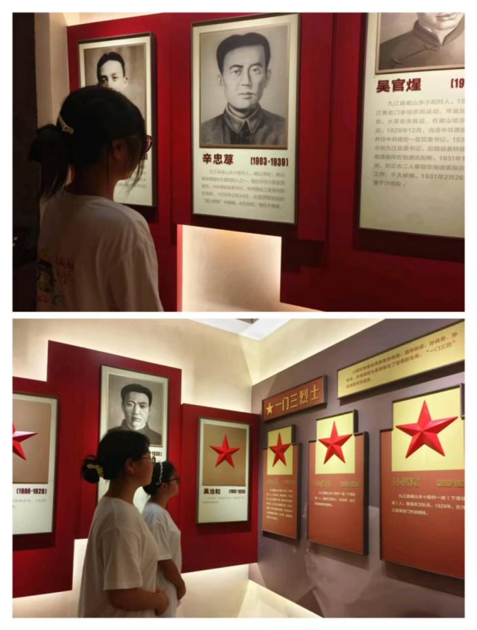 在这里,大家深入了解到辛忠荩烈士的壮烈人生。1927年,这位怀揣救国理想的青年毅然投身革命洪流,在白色恐怖笼罩的岁月里,他以笔为枪、以身为盾,即便被捕后遭受敌人的严刑拷打,仍坚守信仰、绝不屈服,最终用32岁的生命诠释了共产党人“甘将热血沃中华”的赤胆忠心。更令人震撼的是“一门三烈”孙传荣、孙传月、孙传尾兄弟的故事。1938年武汉会战爆发,三兄弟瞒着年迈的母亲相继报名参军,在赣北战场的万家岭战役中,大哥孙传荣率队炸毁日军弹药库时壮烈牺牲,二哥孙传月在马回岭阻击战中与敌人同归于尽,小弟孙传尾在掩护大部队转移时血洒战场。三封未寄出的家书、三件布满弹孔的旧军装,无声诉说着“苟利国家生死以”的家国情怀,让在场队员潸然泪下。
