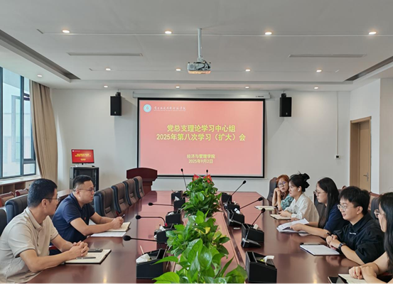 9月2日,beat365党总支理论学习中心组召开2025年第八次集体学习(扩大)会,此次学习以“深入学习领会习近平经济思想”为主题。会议由学院党总支书记龙犇主持,学院党总支委员、领导班子成员、全体科级干部参会。