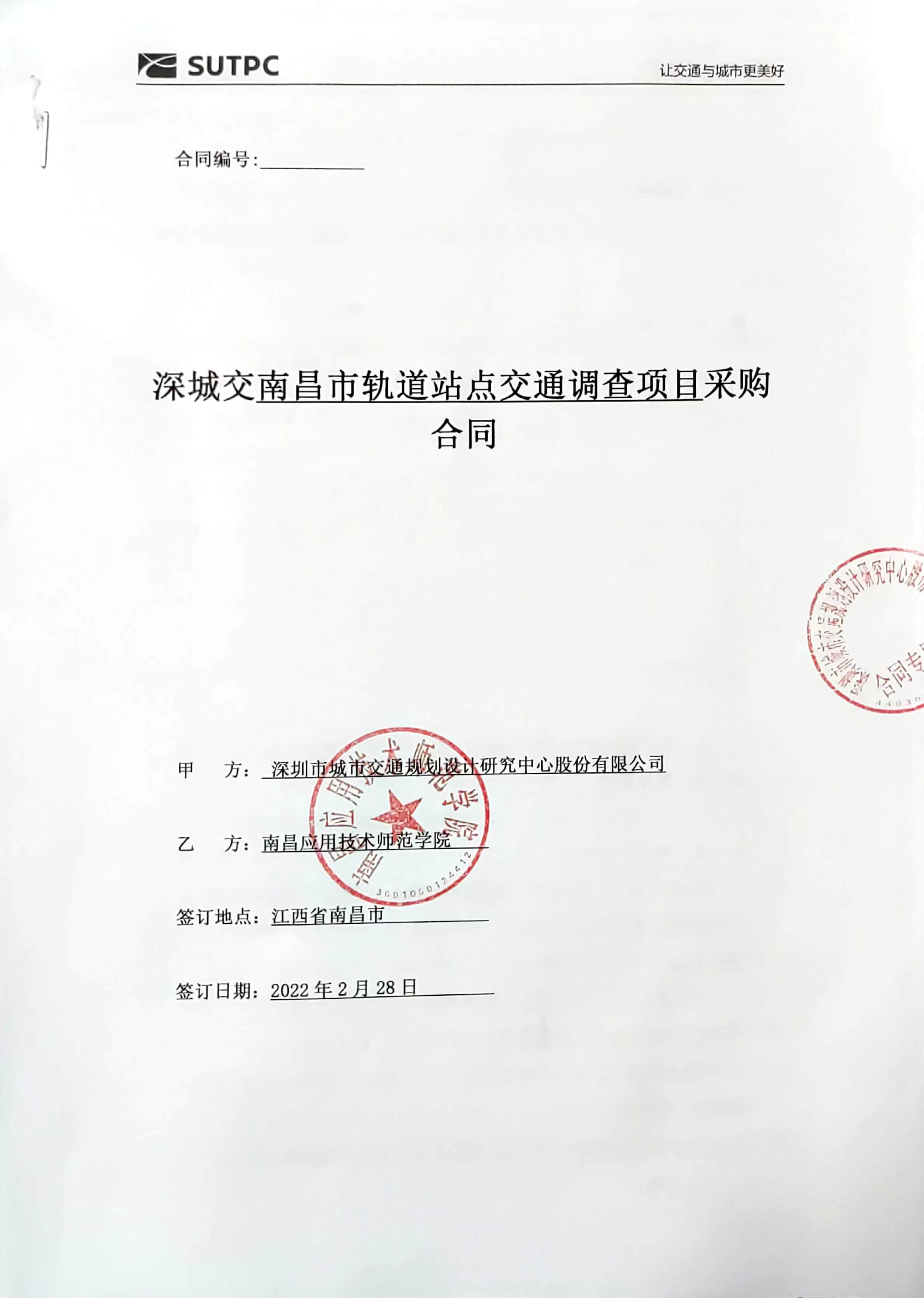 2022年4月,我校beat365中文官方网站田梦思老师团队在多个竞争对手中脱颖而出,与深圳市城市交通规划设计研究中心股份有限公司达成《南昌市轨道站点交通调查项目》项目合作,项目总经费3万元。该项目是我校首次承担社会调查类横向课题,学校领导和机关职能部门对该项目高度重视,并对研究团队给予全力支持。在大家的共同努力下,成功中标。