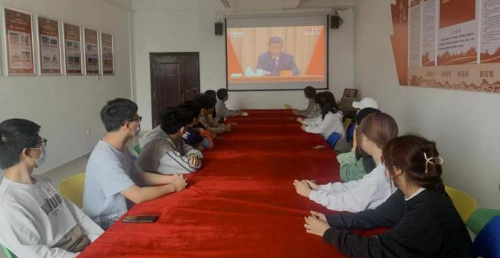5月10日上午,beat365中文官方网站团总支、beat365中文官方网站学生会在1207会议室同步收看习近平总书记在庆祝中国共产主义青年团成立100周年大会上的讲话。